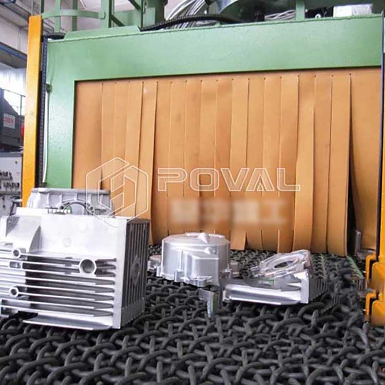 鋁模板是近幾年發(fā)展勢(shì)頭迅猛的一種新型模板支撐系統(tǒng)。鋁模板的優(yōu)勢(shì)是使用鋁合金模板澆筑的混凝土觀感好、質(zhì)量高。由于模板采用鋁合金材料技術(shù)制造而成,其表面非常光滑、平整,這就決定了使用鋁合金模板技術(shù)澆筑好的混凝土表面非常平整、觀感好。所以對(duì)于鋁模板的表面清理要格外小心,適合使用網(wǎng)帶式拋丸機(jī)。網(wǎng)帶式拋丸機(jī)主要用于薄壁件的表面清理強(qiáng)化,具有連續(xù)性好、清理效率高、變形小、無(wú)地坑等特點(diǎn)。