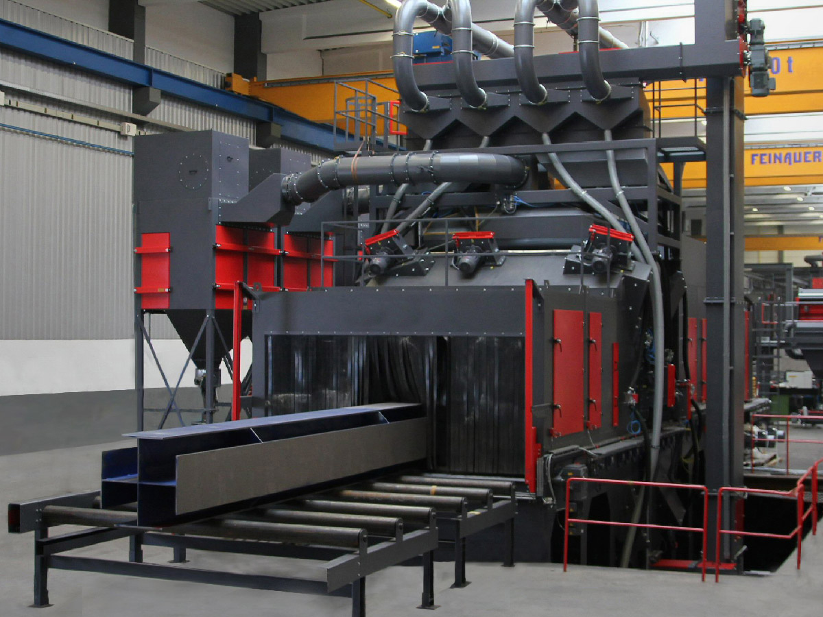 工型鋼由于其尺寸特點(diǎn),大多選用輥道通過(guò)式拋丸機(jī),輥道通過(guò)式拋丸機(jī)專門(mén)用于清理鋼材鋼結(jié)構(gòu)鋼管等大型材料。
